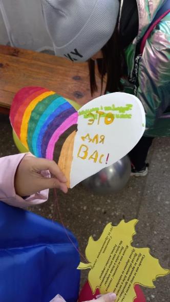 Ребята вручали пожилым людям открытки в форме кленового листа, сделанные своими руками, с поздравлениями и пожеланиями в виде стихов, в том числе о соблюдении правил пожарной безопасности.